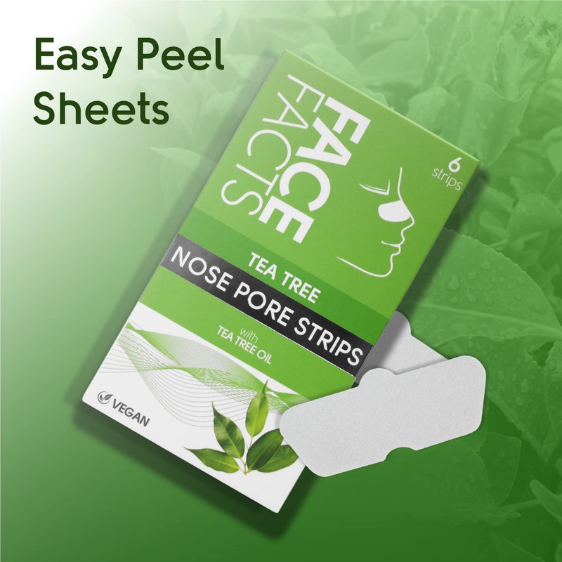 Face Facts Tea Tree Nose Pore Strips | Draws out impurities & oils, helping eliminate blackheads | 6 strips