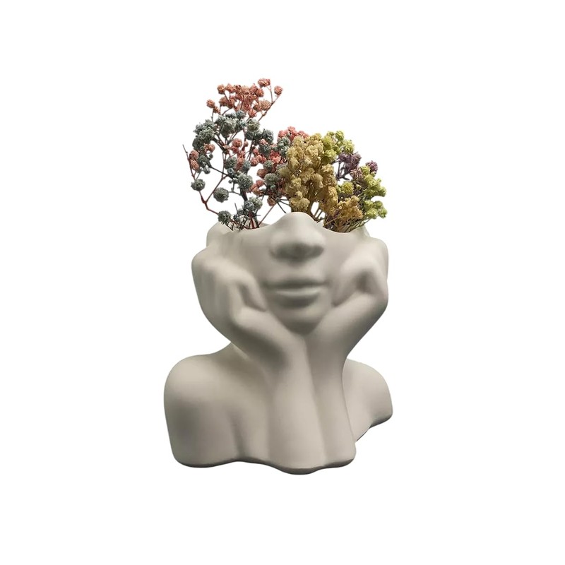 • Artistic Design: This decorative vase features a unique, sculptural bust form crafted from smooth plaster for a striking visual appeal.