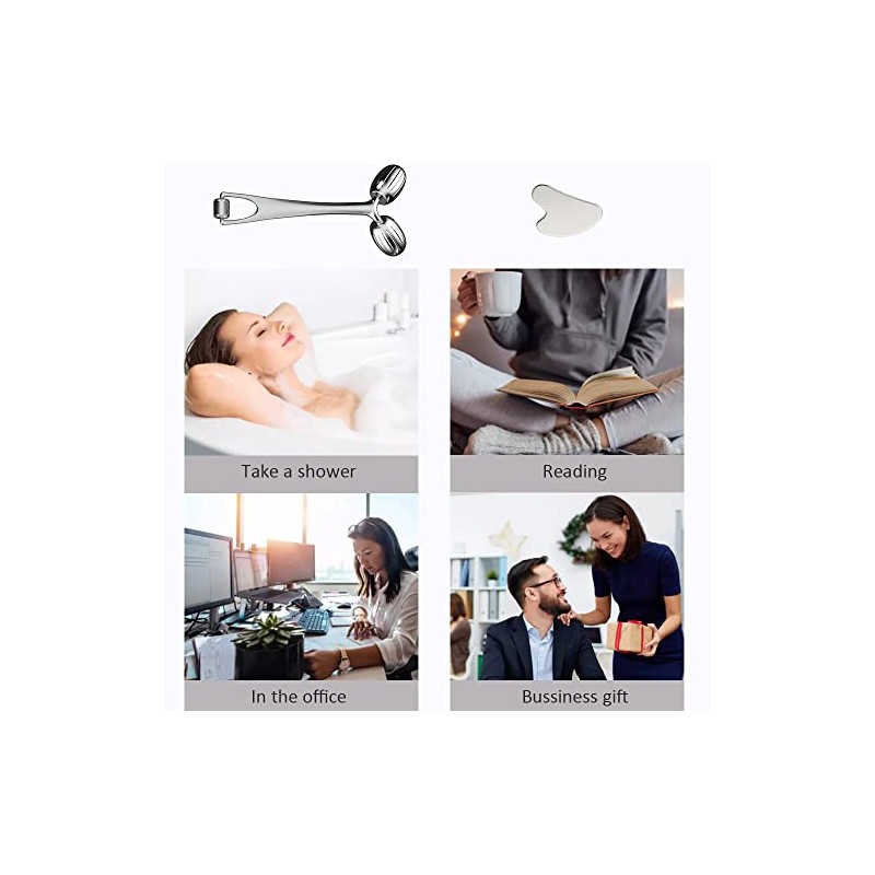- Beauty Skin Care Set: There is a pure metal face roller and a metal gua sha massage tool in the gift box. The combination of the two facial tools is ideal for your all body skin care.