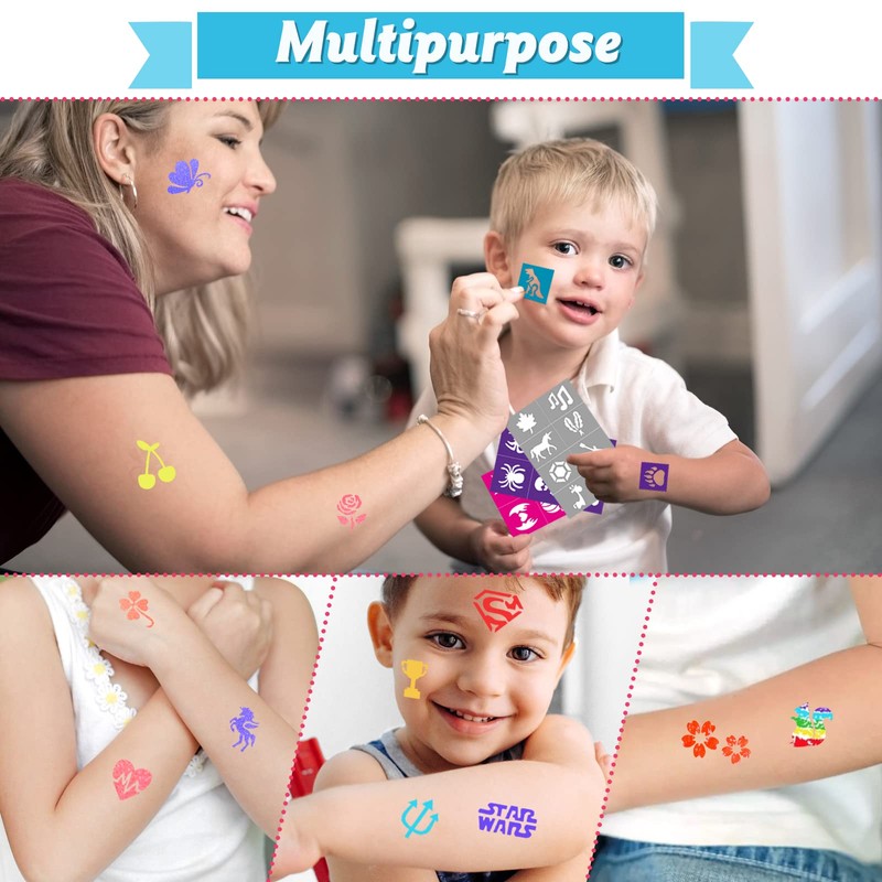 Face Paint Stencils for Kids Reusable, 100 Pcs Face and Body Tattoo Stencils, 5 Themed-Unique Design for Birthday, Halloween, Christmas Party