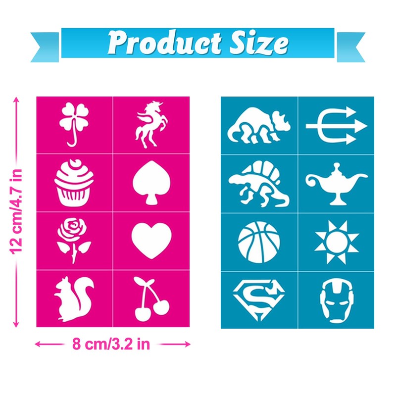 - šćSuitable SizećSuitable size for adults and children, not only for face painting but also for creating glitter tattoos on the body parts like hands, arms, neck, legs, etc.