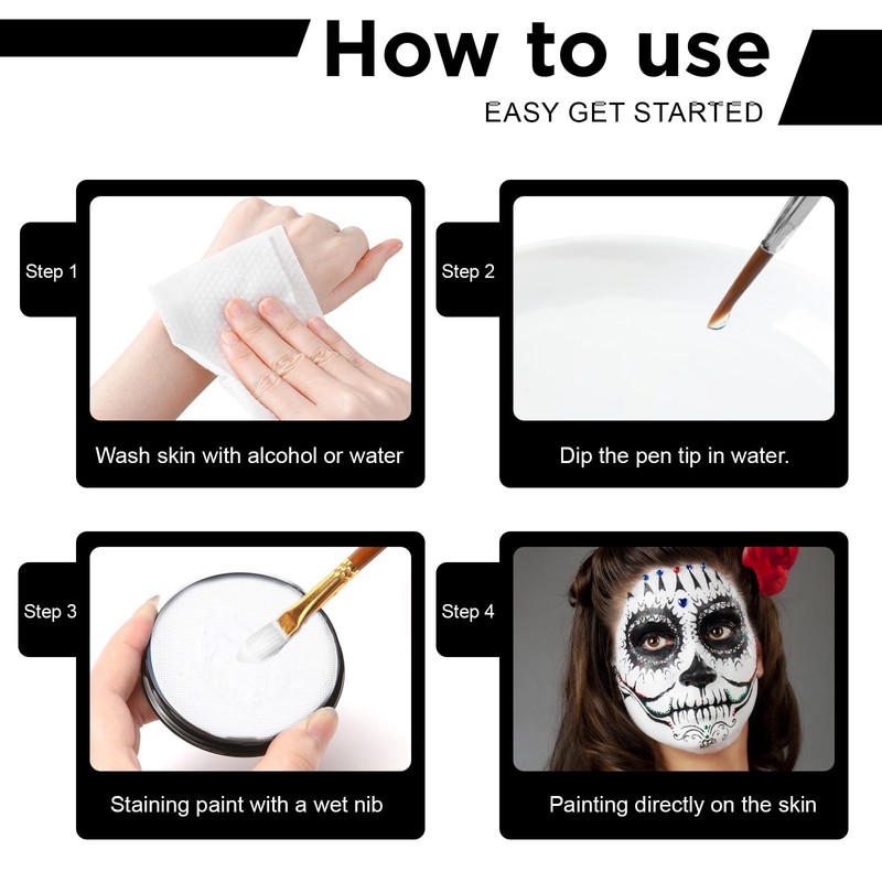 - Skin-friendly material: these fluorescent body paints, like all cosmetics, do not contain harmful chemicals and do not irritate the skin, whether in children or adults. Note: perform a small skin patch test before use.