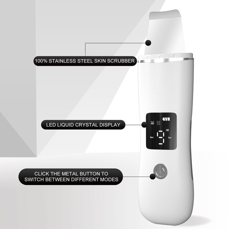 - 4 Modes Skin Spatula - Experience comprehensive skincare with this multifunctional scrubber. Its 3D curved, stainless steel spatula effortlessly navigates your face, even around tricky areas, removing build-up and debris. Simply wet your face and glide the spatula for a spa-like experience.