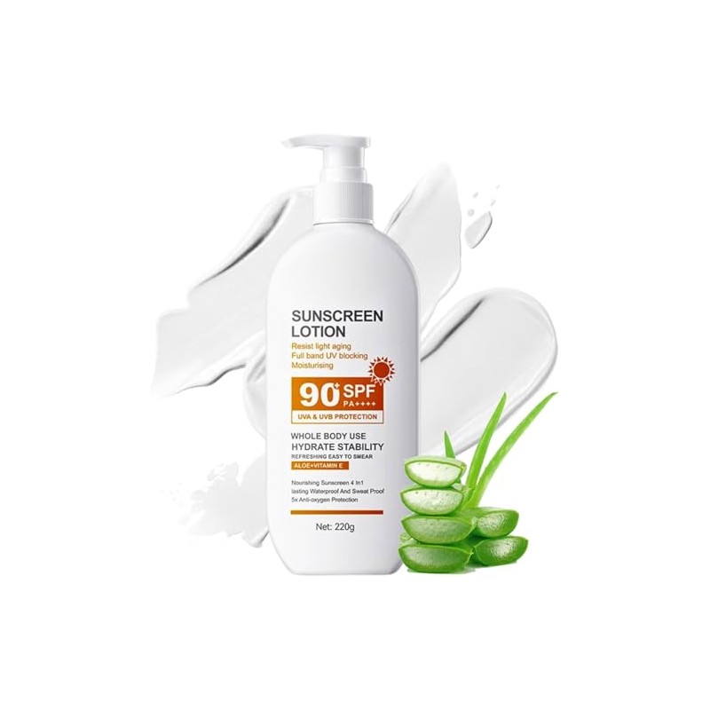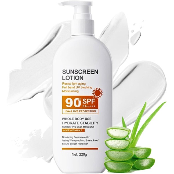 Face Sunscreen SPF 90+, Large-capacity Body Sunscreen, Sun Cream SPF 90 PA+++, Ultra Light UV Protetion, Water & Sweat Resistant 220g