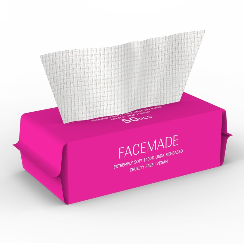 FACEMADE 50 Count (Soft Pack) XL Disposable Face Towels, Ultra Thick Face Towelettes Disposable, Clean Facial Towels for Makeup Remover, Skincare, USDA Certified 100% Biobased