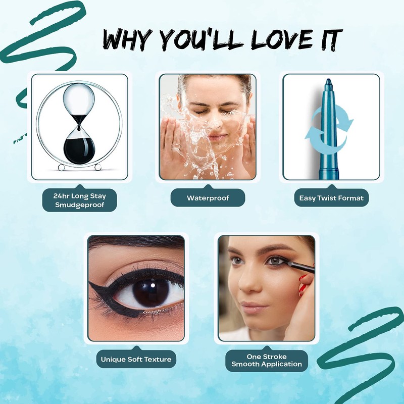 Faces Canada Twist Eye Liner | 24 Hrs Long Stay | Waterproof & Smudgeproof | Made with Carnauba Wax | Intense Color In One Stroke Green 1.2 g
