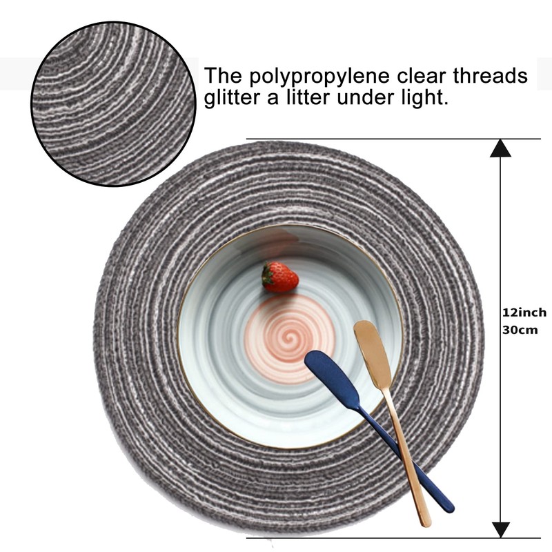 Fachoige 12 Inch Round Placemats for Dining Table Set of 6 Braided Fabric Round Placemat Table Mats Washable Round Braided Placemats for Dining Table Heat Insulation Kitchen (Gray, 6pcs)