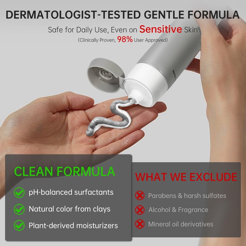 - Double Tube Design: This daily facial cleanser combines desalinated amino acids with micronized white clay in a dual-action formula—gently purifying pores with effective cleansing power while maintaining skin’s natural moisture barrier for a non-irritating finish