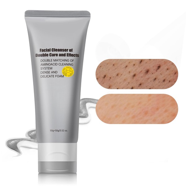 Facial Cleanser, Gentle Exfoliating Face Wash for Deep Pore Cleanser and Makeup Remover for Sensitive Oily Skin, Dual Tube Design with Hyaluronic Acid, 3.52 Oz