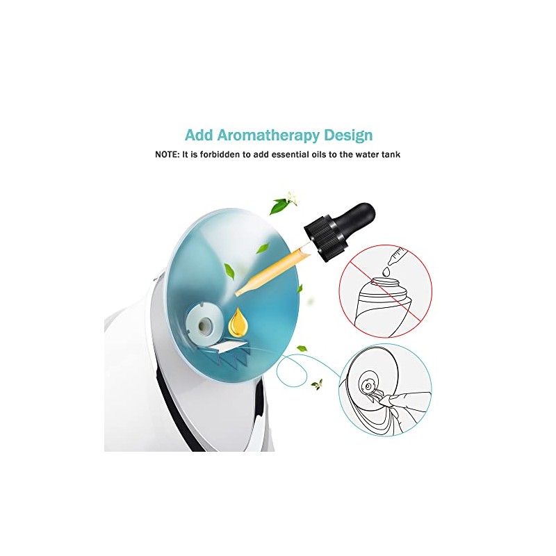 - At Home Facial & Enjoyable Fragrance: The facial steamer helps to moisturize your skin and unclogs pores to allow better penetration. The direction of the nozzle and steam flow is adjustable to create your perfect relaxing at home facial. Moreover, if you need aromatherapy, you can drop a few drops of essential oil onto the aromatherapy pads and place them on the machine's built-in aromatherapy tablets.