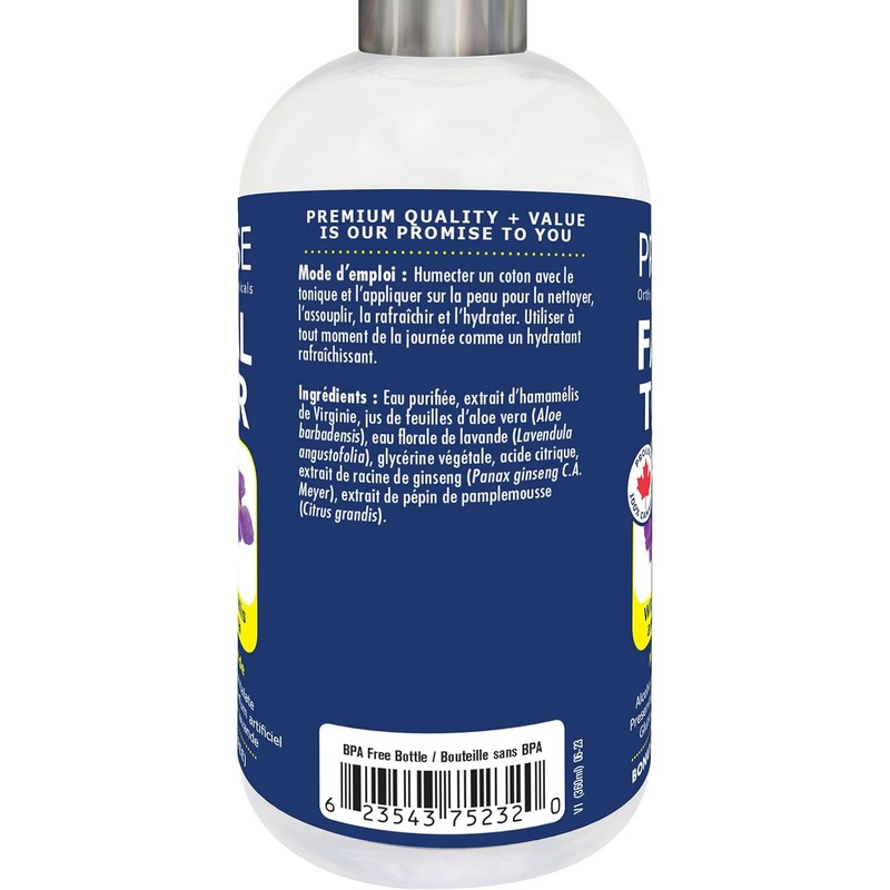 FACIAL TONER 360ml (12oz), Witch Hazel Extract and Aloe Vera Gel, Mild Lavender Scent