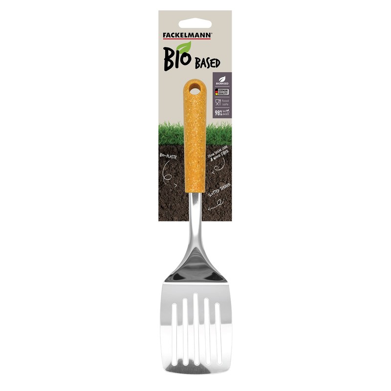 - 1 x Fackelmann BIO Slotted Turner, Stainless Steel Function Head With Wood Fibre Handle, 35x8.5x7cm, Silver & Light brown/Orange