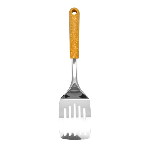 Fackelmann BIO Slotted Turner, Stainless Steel Function Head With Wood Fibre Handle, 35x8.5x7cm, Silver & Light brown/Orange