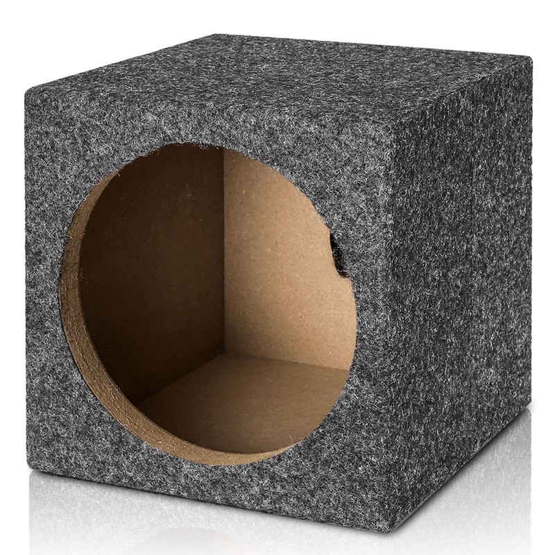 Finished with gray carpet for a professional look, an excellent combination for speaker enclosures. Thanks to a vented design, this subwoofer speaker box allows for maximum output.