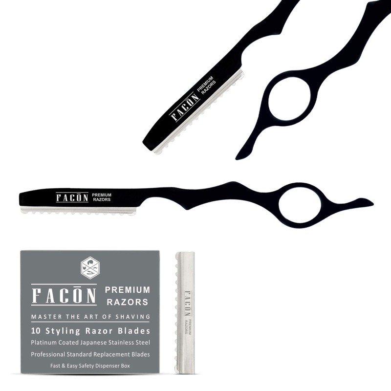 FACON Facn Professional Hair Styling Thinning Texturizing Cutting Faether Razor + 10 Replacement Blades