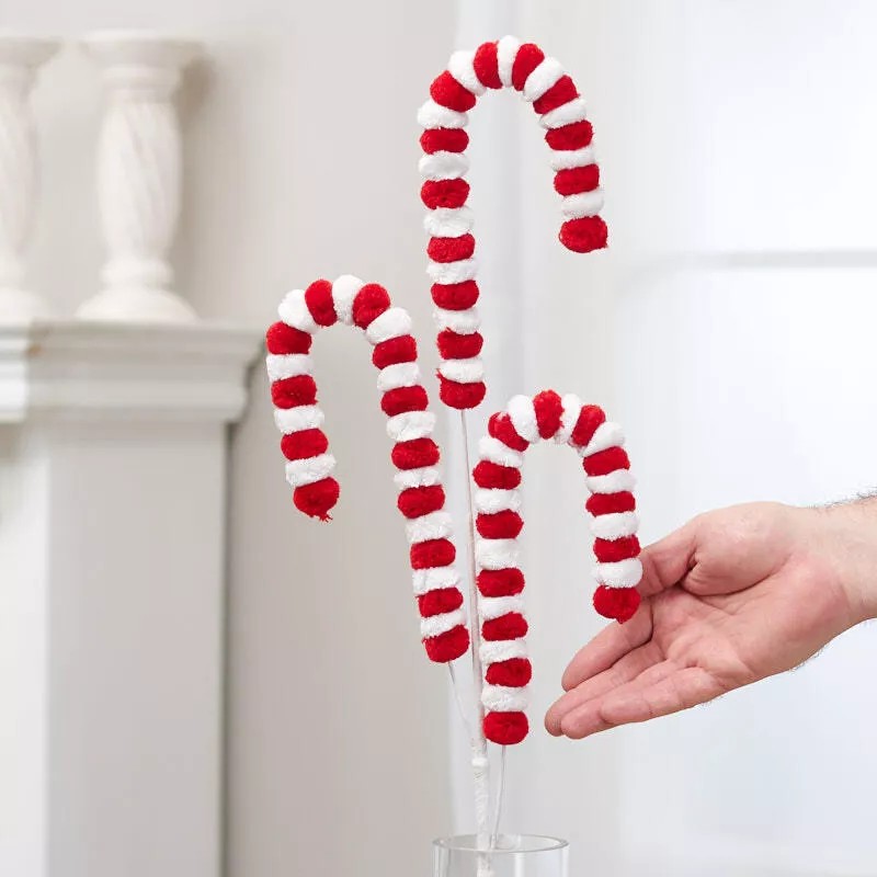 Factory Direct Craft 30-1/2" Tall Winter Pom Pom Candy Cane Floral Spray