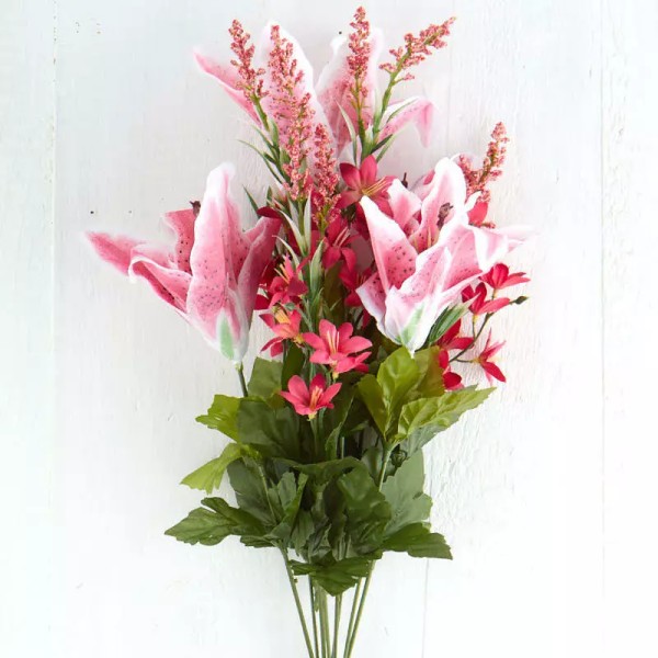 Bright Pink and White Artificial Lily Bush for Arranging, Crafting and Embellishing. | Count: 1 | Size: 21" L
