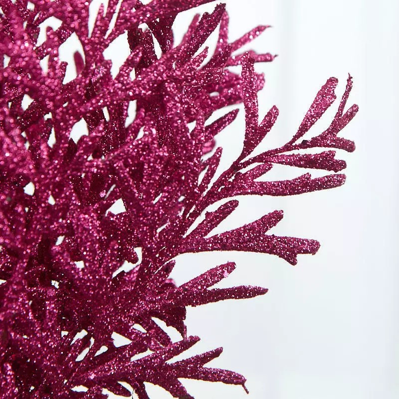 Fuchsia Glitter Leaves Sprays | Set of 6. | Size: 25" L