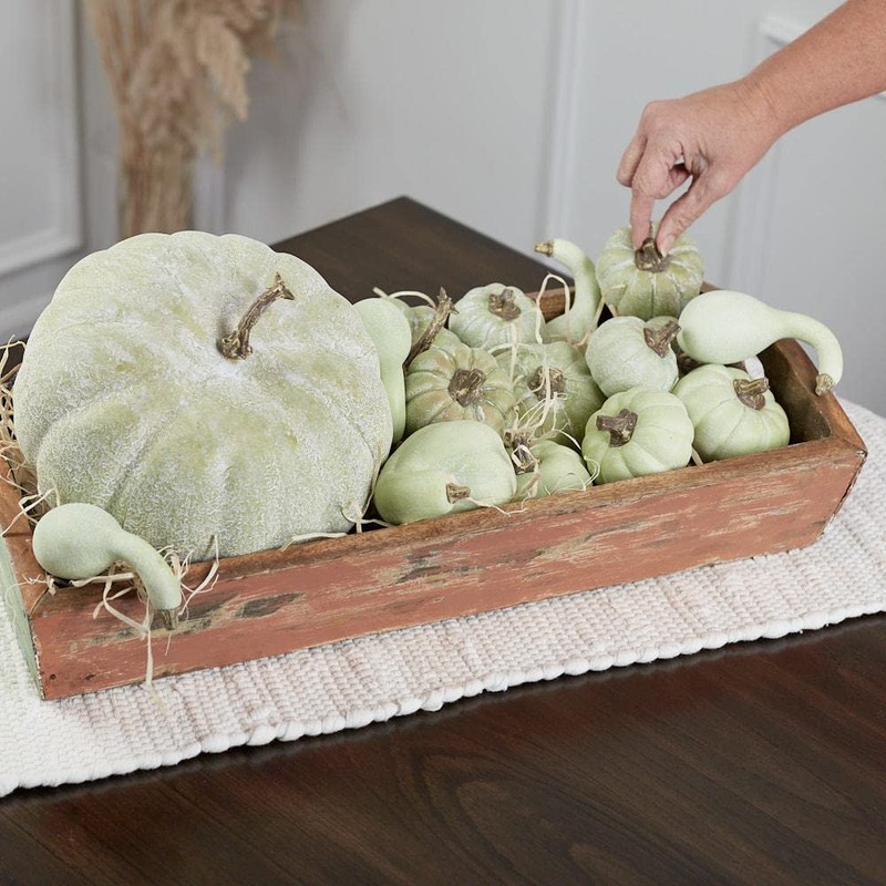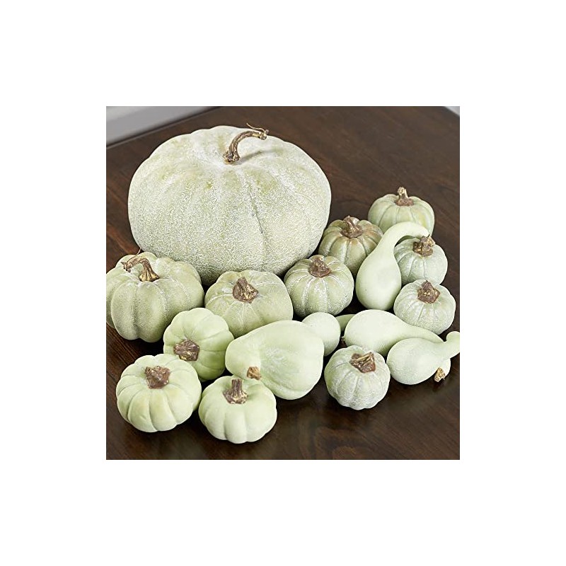 - Package of 17 Green Artificial Mixed Pumpkins and Gourds