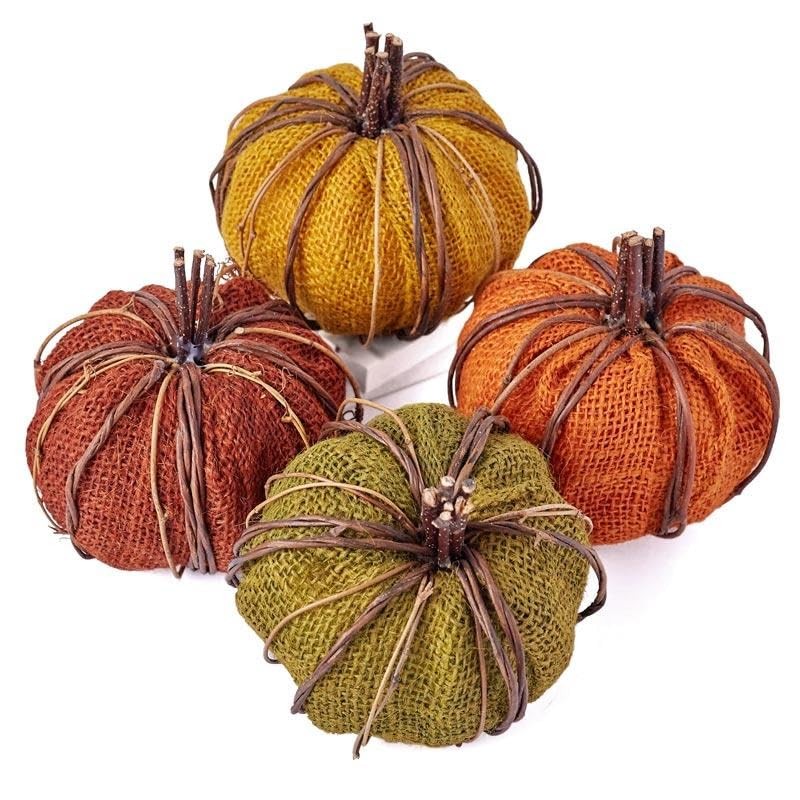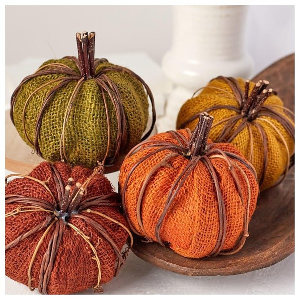 - These Artificial Harvest Mix Burlap Pumpkins will pair well with other natural textures. Consider incorporating elements like raffia, wood, or woven baskets into your display to create a visually appealing composition.