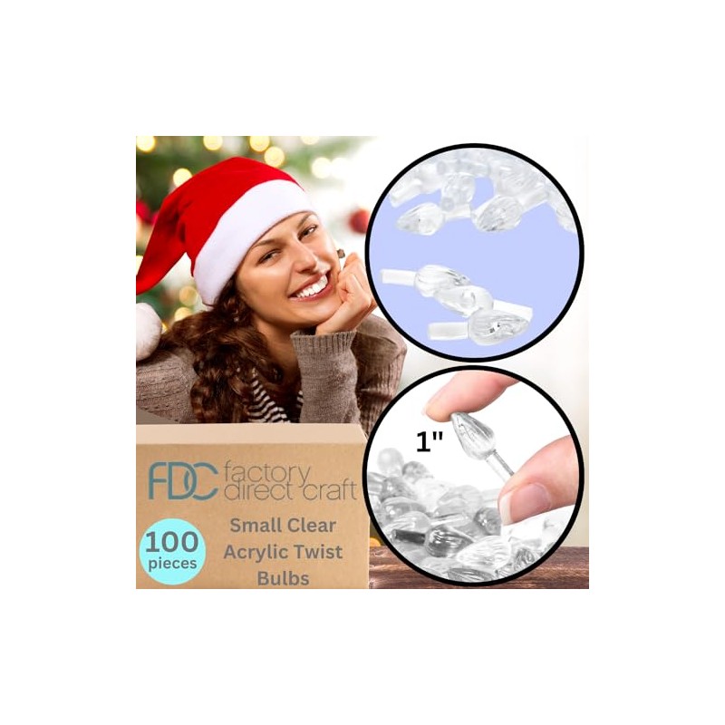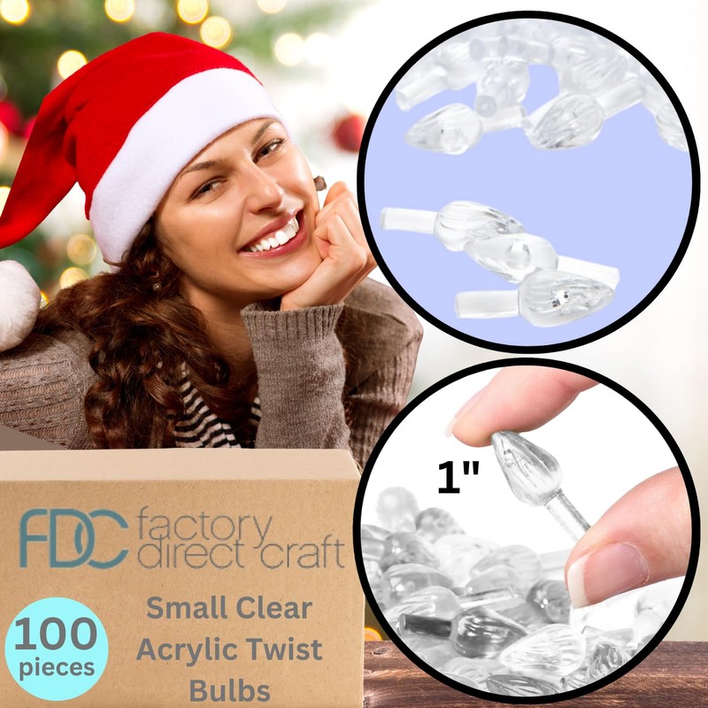 Factory Direct Craft Pack of 100 Mini Acrylic Ceramic Christmas Tree Replacement Twist Bulbs - Clear Plastic Twist Bulbs to Replace Missing Bulbs on Ceramic Trees (1 Inch L)