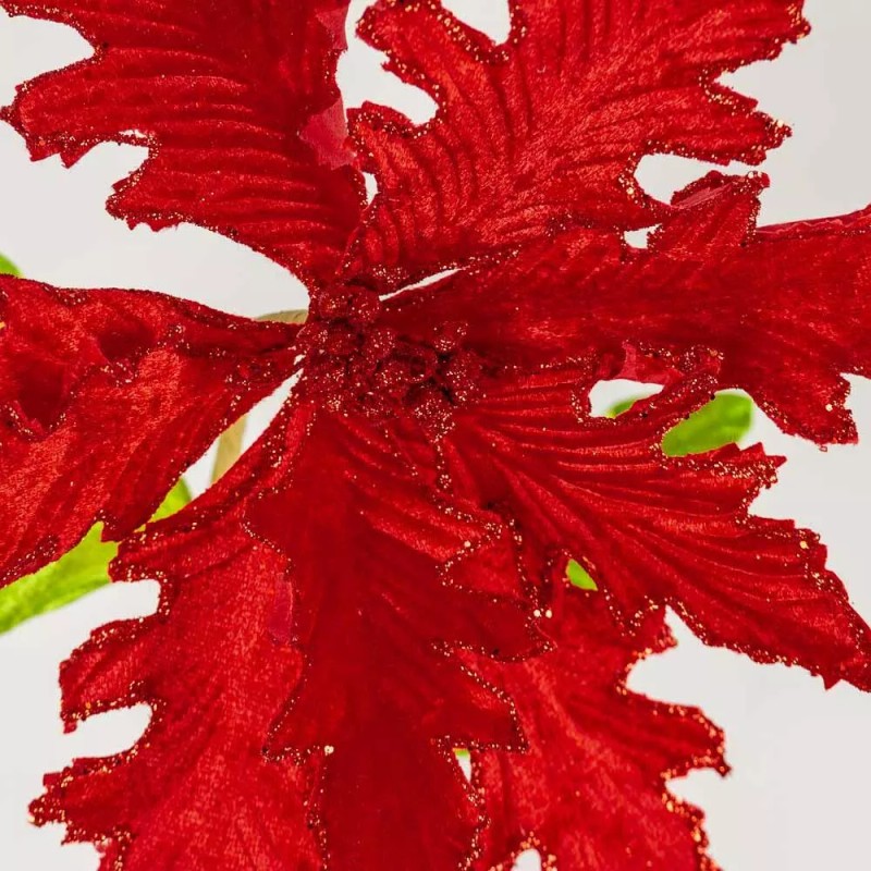 Display these velvet poinsettia floral stems in your Holiday centerpiece, pine wreaths or your decorated tree.