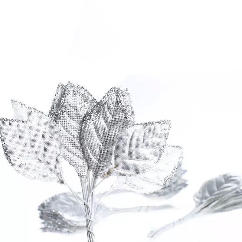 Factory Direct Craft Silver Glitter Trimmed Rose Leaves