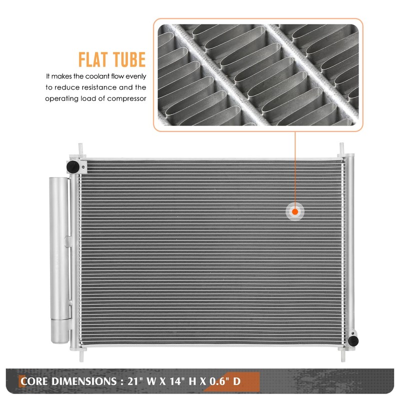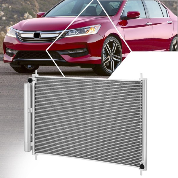 Factory Style Aluminum Front A/C Condenser Compatible with 2014-2017 Honda Accord Hybrid Model