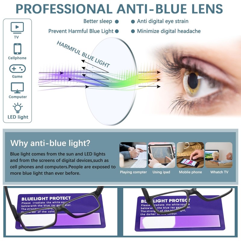 - [Professional Eye Protection Lens]: Blue light blocking magnifying lens with UV protection help you filter harmful blue light when using digital screen and reading.