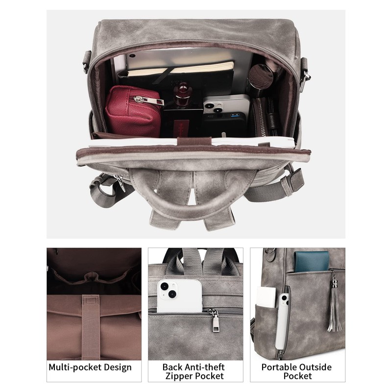 - Structure: This leather backpack purse for women adopts a zipper with a large vertical opening at the top, which is very convenient for loading items. There are muti-pockets inside the PU leather backpack, which is convenient for storing your items. This backpack has 13 pockets: 1 main compartment, 1 laptop compartment,1 interior zipper pocket, 2 interior slot pockets, 2 interior side pockets; and 2 external side pockets, 1 front zipper pocket, 2 upright zipper pockets, 1 back zipper pocket.