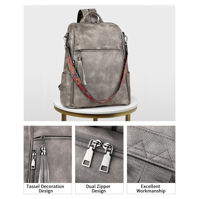 - Design: The backpack purse for women adopts the design concept of light and practical, that the backpack purse looks rather simple and fashionable. The popular convertible design (backpack to shoulder bags) makes this convertible backpack purse suitable for a variety of use scenarios; and the design with colorful shoulder straps and tassels makes the leather backpack purse distinctive. The fashion backpack purse is available in a variety of colors and leather styles for easy fashion matching.