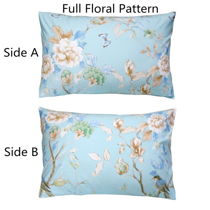 FADFAY 20X30 Pillowcase Shabby Blue Floral Bird Print Shams 100% Egyptian Cotton Pillow Covers, 2Pcs, Standard Size (Twin/Full/Queen)