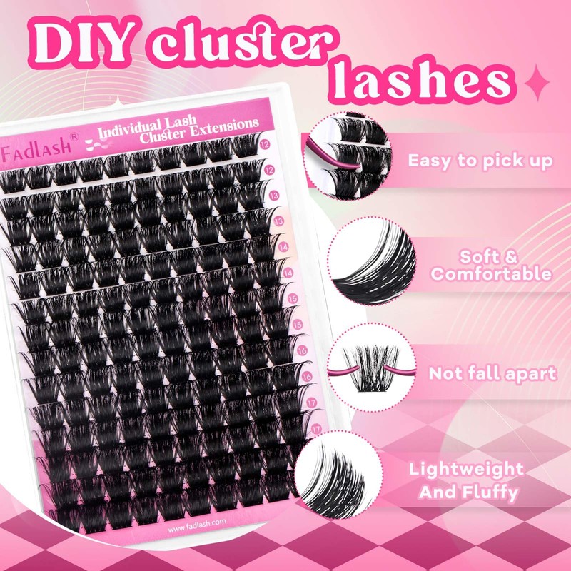 - Diy Lash Cluster Kit: The Cluster Lashes kit includes 1 tray of 200D Eyelash Clusters, 1 lash tweezers, 1 lash brush. Our DIY lash cluster kit allows you to easily create natural long eyelashes at home, providing you with the convenience to apply them without needing to visit a salon, saving you time and money.