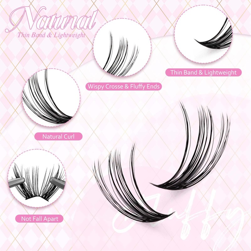 • Usage: The eyelash set is very easy to use. Use cluster eyelash pliers to grip the eyelashes. Apply cluster bond to the root of thick cluster eyelashes, or gently brush your natural eyelashes with eye black. After wearing it at the base of the eyelashes, gently brush a layer of sealing material to strengthen the individual eyelashes. Even if you are a beginner, you can easily do it.