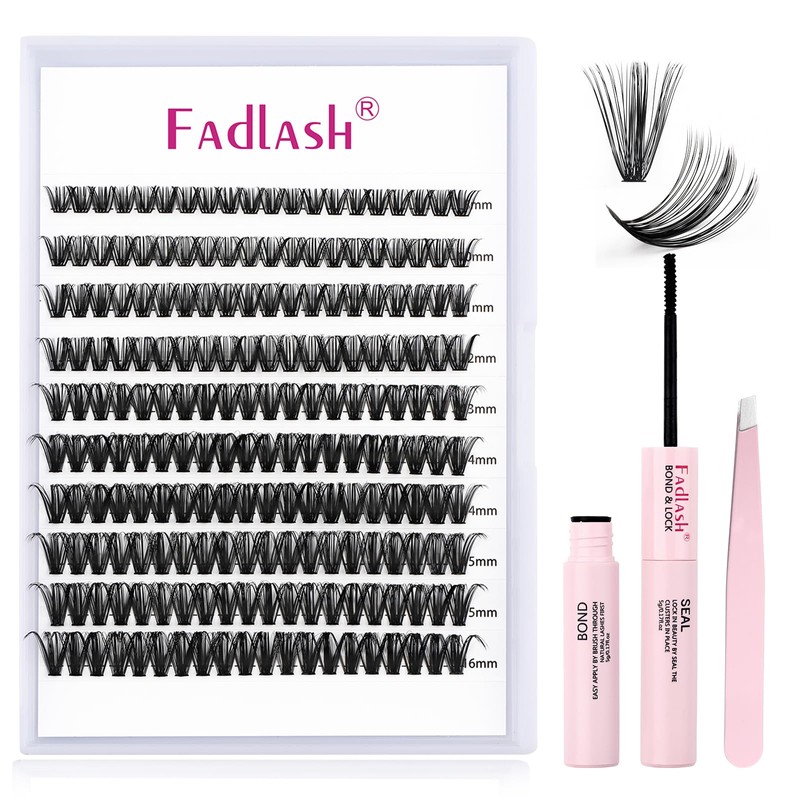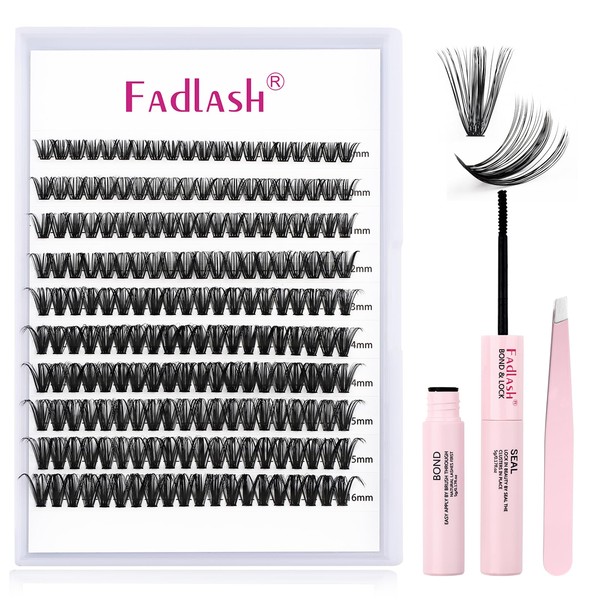 Fadlash Individual Eyelashes Cluster Lashes Kit 0.07 D Curl 8-16mm 40D Eyelashes Extension Kit Natural Cluster Lashes with Lash Glue Bond and Seal,Tweezers Light Fluffy DIY at Home