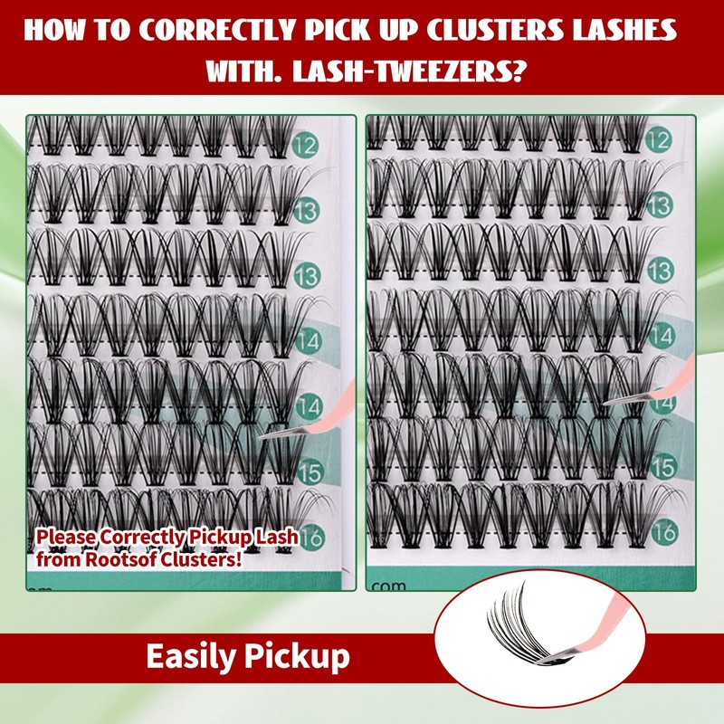 - 【Simple 5-Minute Eyelashes Clusters】Our cluster lash extensions are designed to add a natural look and feel to your eyes with ease and convenience, leaving you with a flawless and effortless look that lasts all day. Whether you're a beginner or a pro, our individual lash clusters are easy to apply and will instantly enhance your natural beauty.