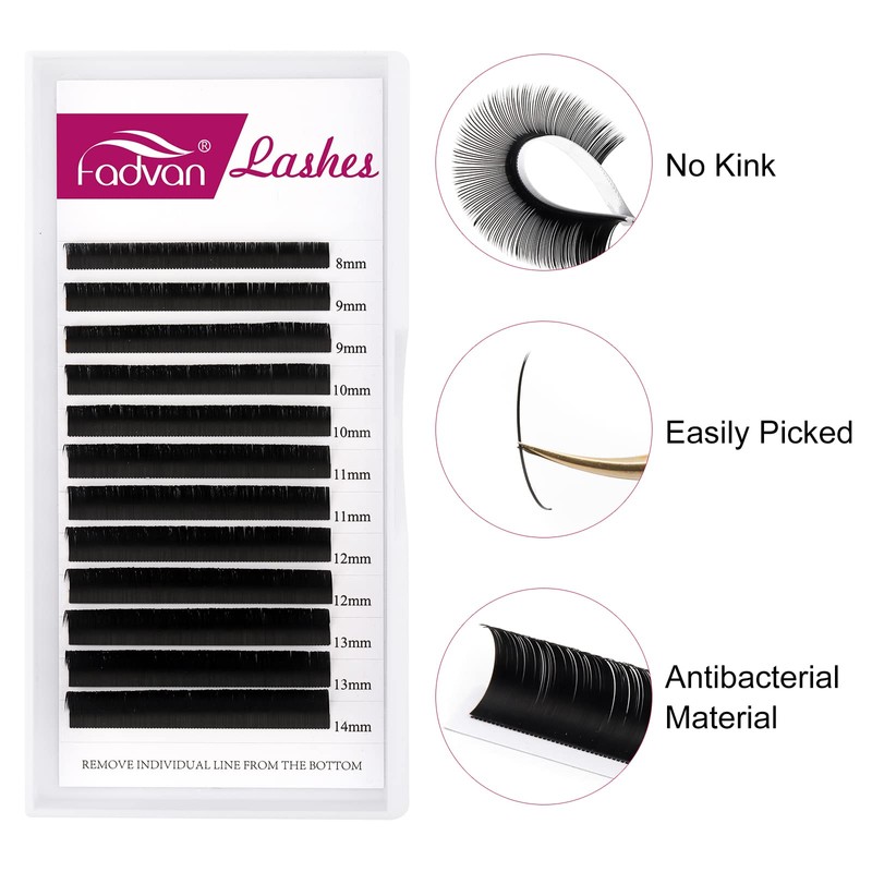 FADVAN Flat Lashes 0.15C Curl Eyelash Extension 1:1 Ellipse Flat Eyelash Extensions Flat Individual Eyelash Mix 8-14 mm (0.15C-814)