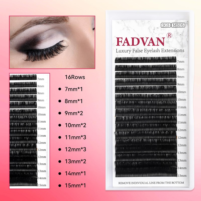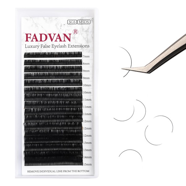 FADVAN Individual Eyelash Extensions 0.07 C Curl 7-15 mm Blending Tray 12 Row Individual Eyelashes for Eyelash Extension Roll Individual Lashes 1 to 1 Professional Classic Eyelash Extensions
