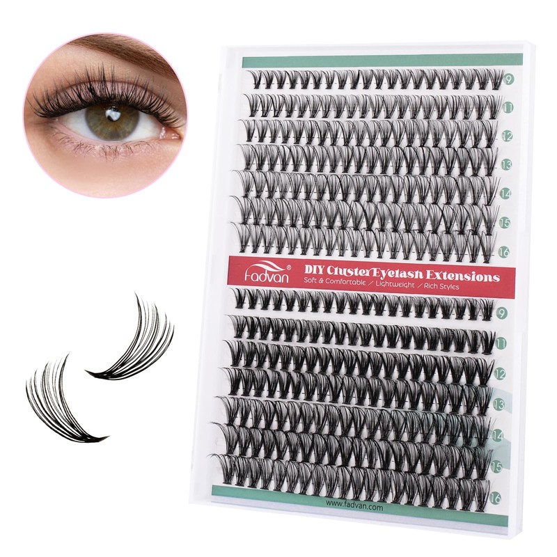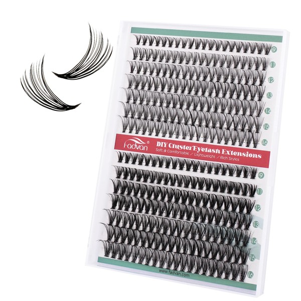FADVAN Lash Extension 280pcs C Curl 20D+40D Cluster 9-16mm Mixed Individual Cluster Lashes (20D+40D 9-16mm and Under Eyelashes)