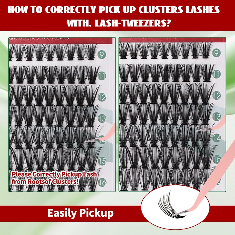 - 【Simple 5-Minute Eyelashes Clusters】Our cluster lash extensions are designed to add a natural look and feel to your eyes with ease and convenience, leaving you with a flawless and effortless look that lasts all day. Whether you're a beginner or a pro, our individual lash clusters are easy to apply and will instantly enhance your natural beauty.