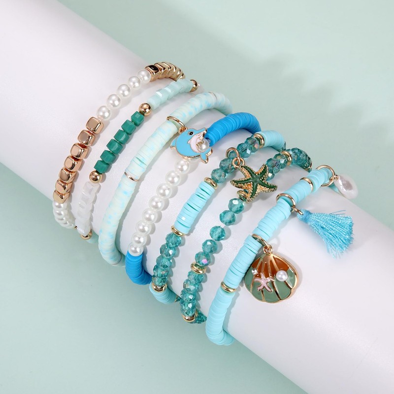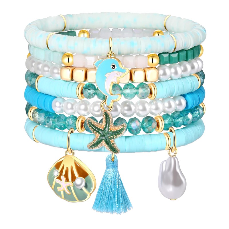 - 【Surfer Heishi Bracelets】The package comes with 7 pieces bracelets in different styles, the multiple designs make it sufficient for you to choose from and decorate. The bracelet set is collected and designed with kinds of special elements - golden beads, blue and white vinyl clay, dolphin, shell, starfish, pearl, tassel, and so on. These preppy Heishi Bracelets are stylish and chic accessories, vibrant colors look stunning in the summer sun, take you to the beach anytime!