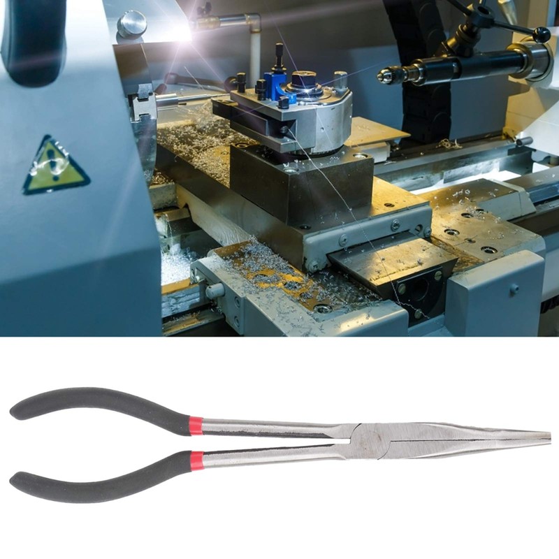 - Tools for mechanical pliers: Work around obstacles with 11 inch long and 25 degree angle needle pliers, reach for small parts and bend wires.