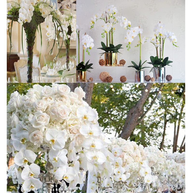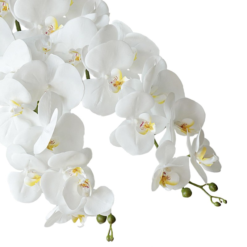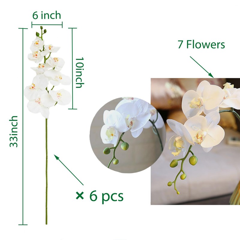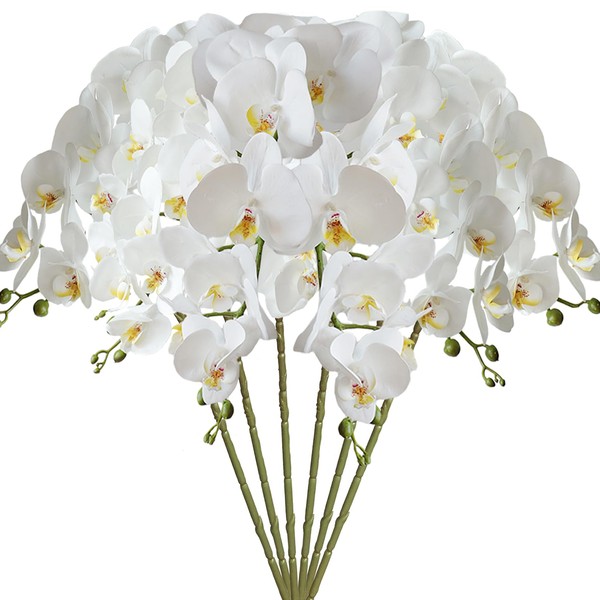 FagusHome - Flores artificiales de Phalaenopsis de 33 pulgadas, 6 unidades, plantas de tallo de orquídeas artificiales para decoración del hogar (blanco puro)
