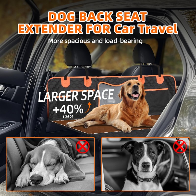 - 【Back Seat Variation Bed】 In order to provide your pet with a comfortable and safe travelling experience, we combined three sturdy honeycomb panels to create a super comfortable dog backseat extender. It not only extends the space in the backseat of your car to provide double the room for your dog to move around and lie down, but also effectively prevents your dog from falling into the foot space during hard braking and sharp turns.