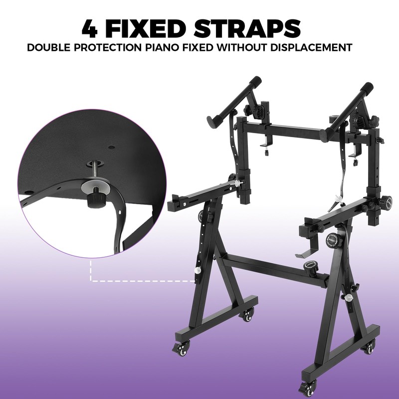 - Double Layer Design: Our dual piano keyboard stand innovative double-layer structure features a secure buckle at the top, allowing you to safely place your laptop or mixer on the second layer while playing the piano