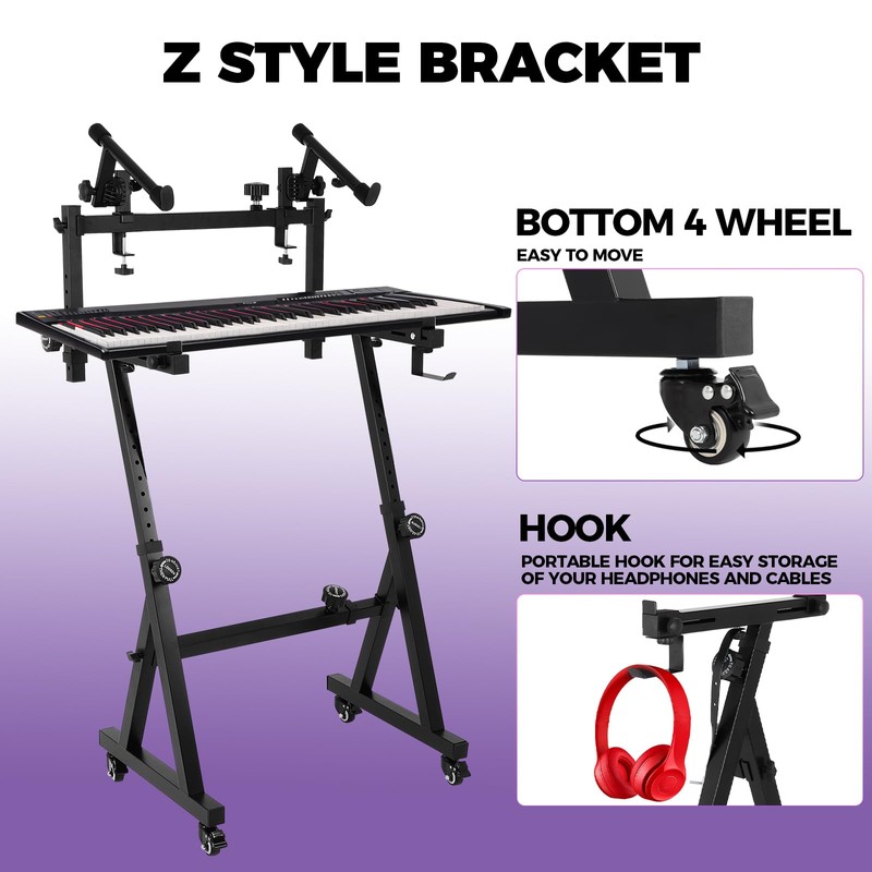 - Sturdy Load Bearing: The Z-shaped design provides stable support for 2 keyboards without shaking, with a weight capacity of up to 220 lbs. Additionally, a built-in fastening strap keeps your keyboard securely in place during use