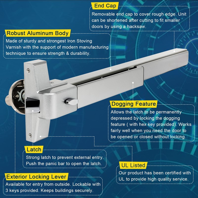 - Widely Used: Class 1 ANSI certified emergency bar door hardware device, this product can be applied in churches, shopping malls, factories, office buildings, hospitals and other emergency places to ensure people's life safety