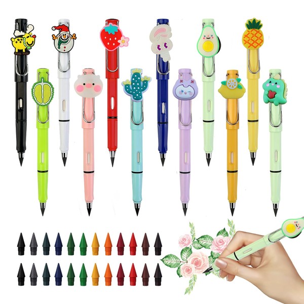 - 1. Eternal pencil set: a total of 12 eternal pencils are included and 24 eternal pencil replacement leads. Each pen contains an eraser inside. This ink free eternal pencil is easy to remove and replace the pencil lead for long-term use.