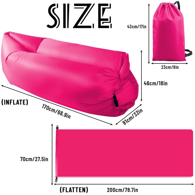 - Multifunctional: inflatable couch camping can be used as a camping bed or beach lounger and replaces bulky hammocks, folding chairs, air beds, deck chairs, etc.