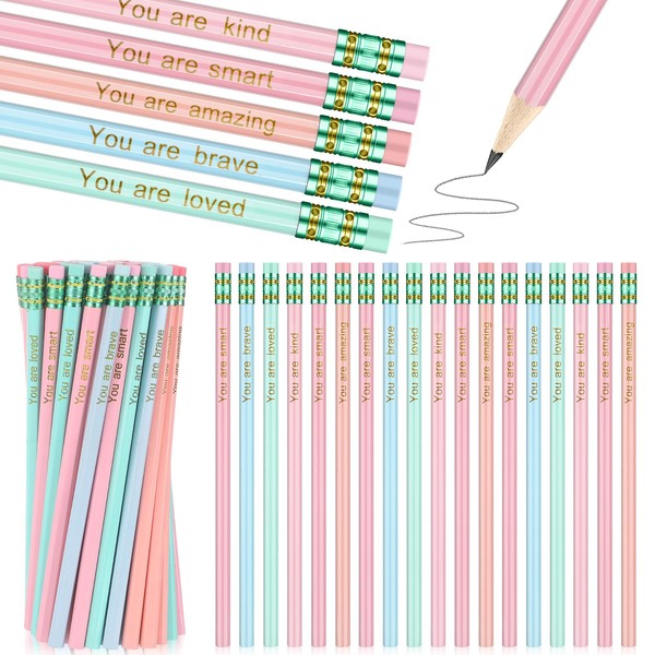 - Inspirational Text Design:our motivational pencils are printed with 5 different motivational quote designs,such as [You are brave], [You are kind], [You are smart], [You are amazing]; Motivational praise pencil sets are a nice way to help children, men, women discover strengths and build confidence